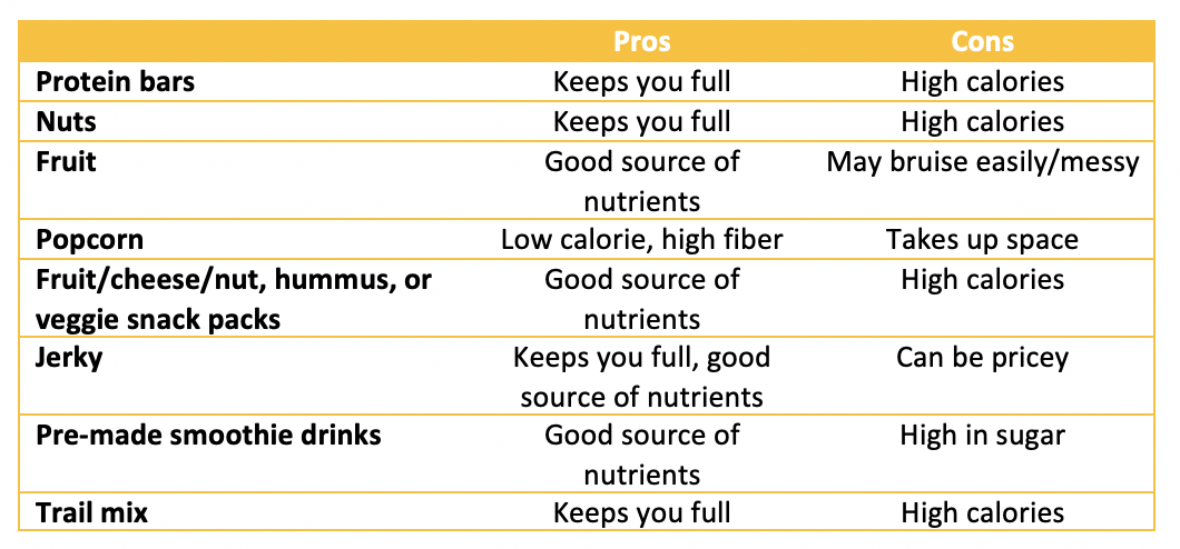 Look for healthy snacks that include protein/fats (they’ll keep you fuller longer).