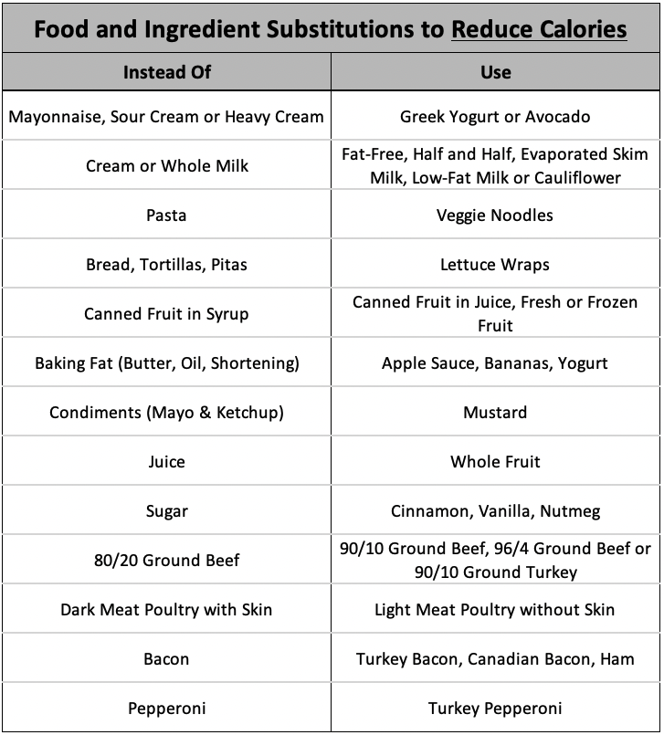 - Food and Ingredient Substitutions to Reduce Calories