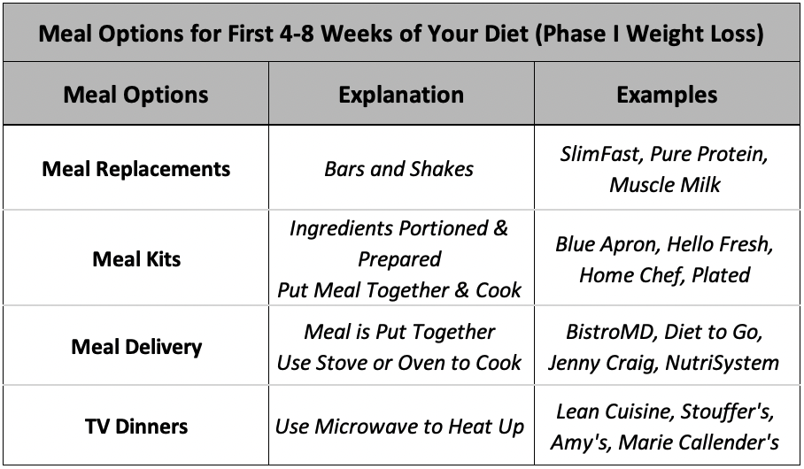 - Meal Options for the First 4-8 Weeks