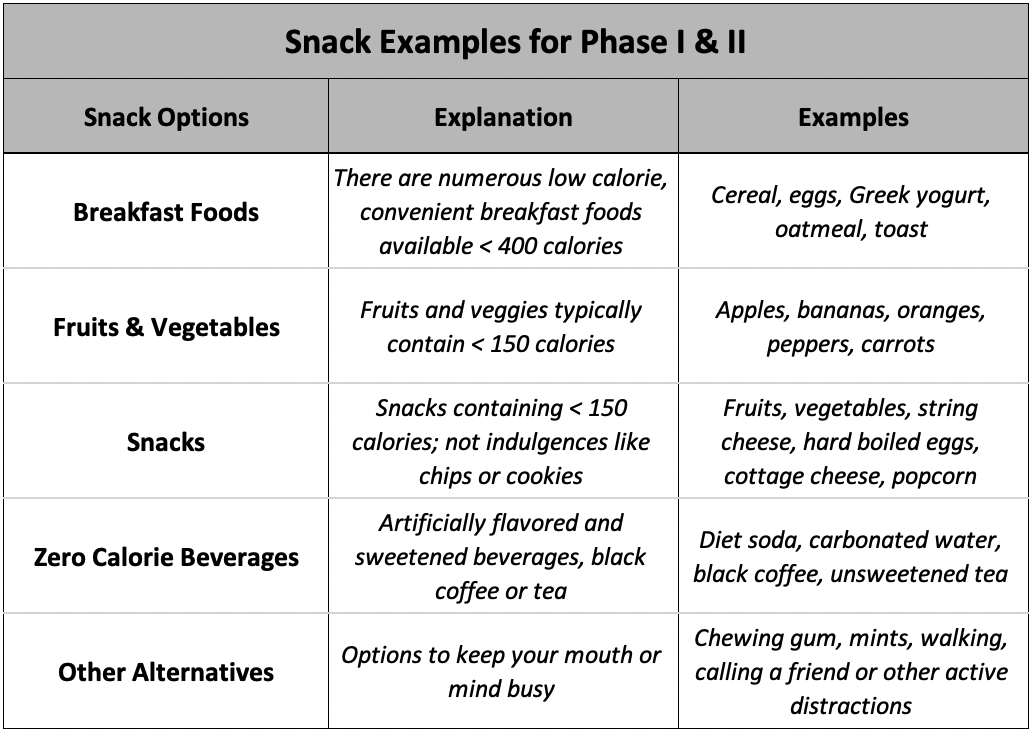 - Snack Examples for Phase I & II